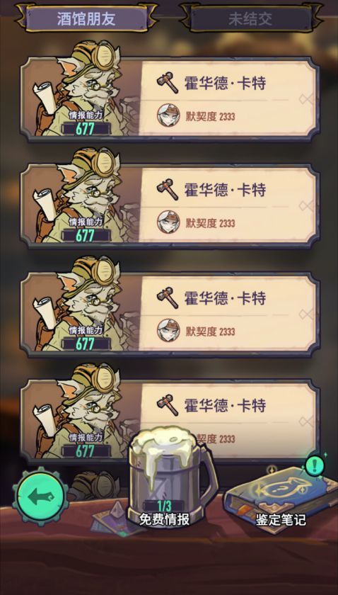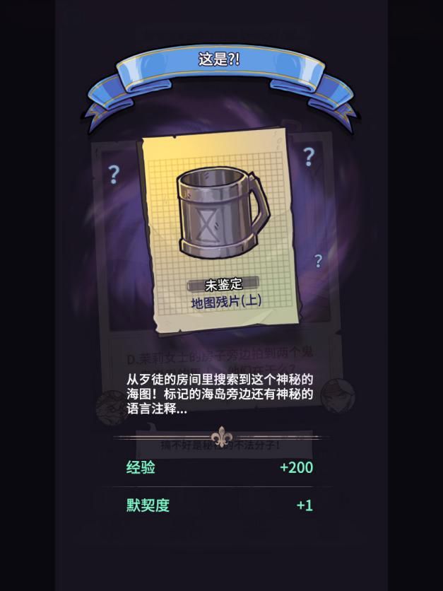 闯关后你能在某些地方发现非战斗npc。通过一个叫打牌的功能可以有几率让你的战魂结识一个特定的非战斗npc,这个npc以后就会在酒馆出现。玩家在酒馆可以喝酒,可以随机在已经有的npc朋友处获取情报、遇到某些事件,这些事件有可能找到宝藏残片。