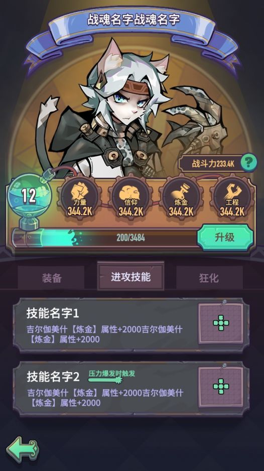 战魂技能分为攻击技能和狂化形态技能,其中攻击技能主要用于进攻,狂化形态则作用于防守,主要是在外形有古神给予的祝福,具体看图啦~