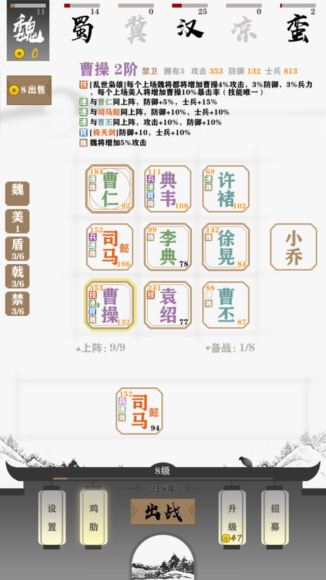 啥也不多说,就一个字,保!八个辅助保一个曹操,致敬澡子哥(手动滑稽)。图一是没吃buff前,图二是吃buff后,图三是一人单挑对面全对,禁卫buff攻击防御。再加八保一,别人打不进,自己一拳一个小朋友,曹老板牛批!!