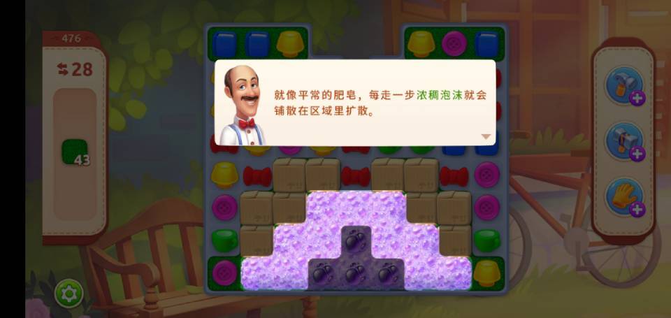 如果你该回合没有及时消除任何泡沫,会从随机的一块泡沫中进行上下左右随机一个方向吞噬掉一个图块。并且在任何一步里面没有消除到泡沫,它会逐渐蔓延,这种情况该怎么办呢!