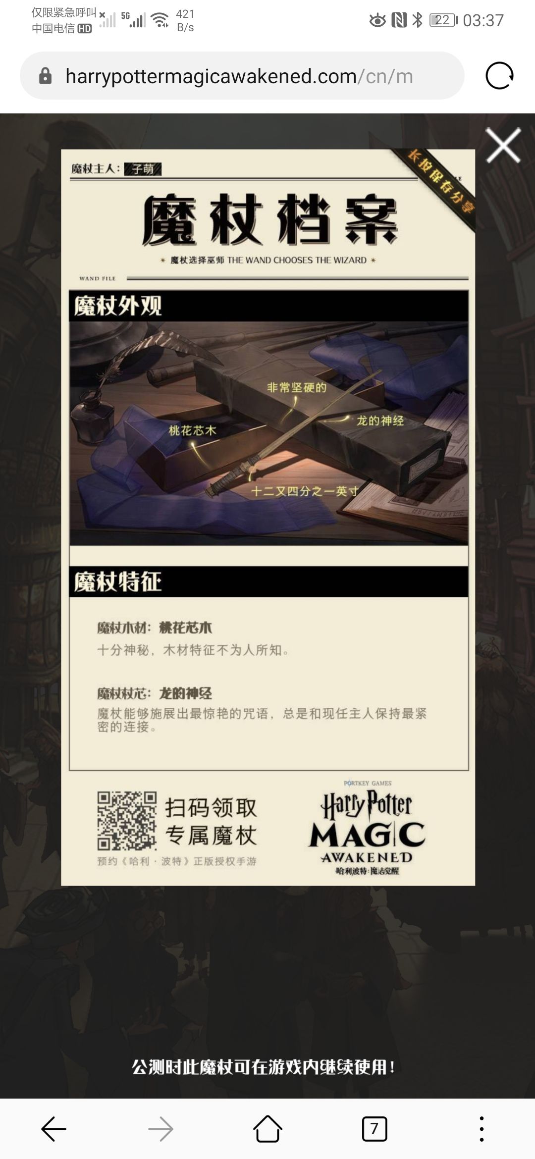 官网做完题目是:红杉木,凤凰羽毛,14又二分之一,富有弹性然后预约就变成了:桃花木,龙的神经,12又四分之一,非常坚硬虽然说是说魔杖选择主人可是。。。。。这差的也太多了吧,毕竟也是一本正经翻译了测出来的,现在进游戏就被这么随机一抽有点。。。。。。emmmmmmmm