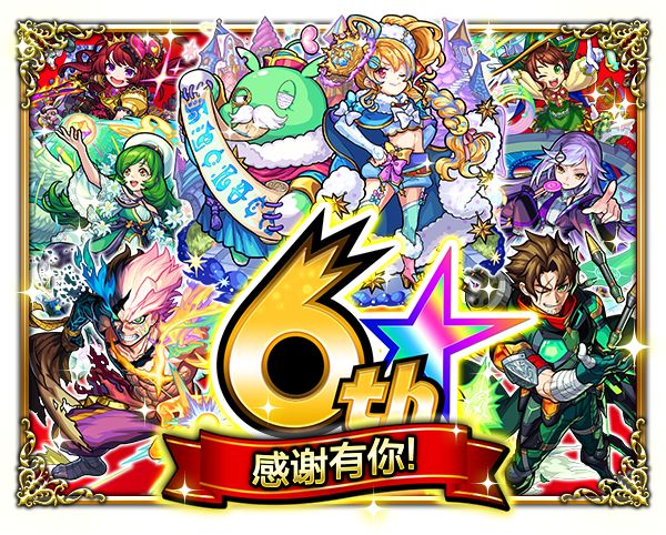 今年怪物弹珠迎来了6周岁,各位玩家可从扭出的「6位」角色中任选其一收入囊中!
