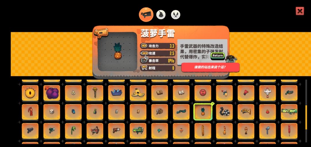 第十名:菠萝手雷(特殊类,我在第二关商店找到的)