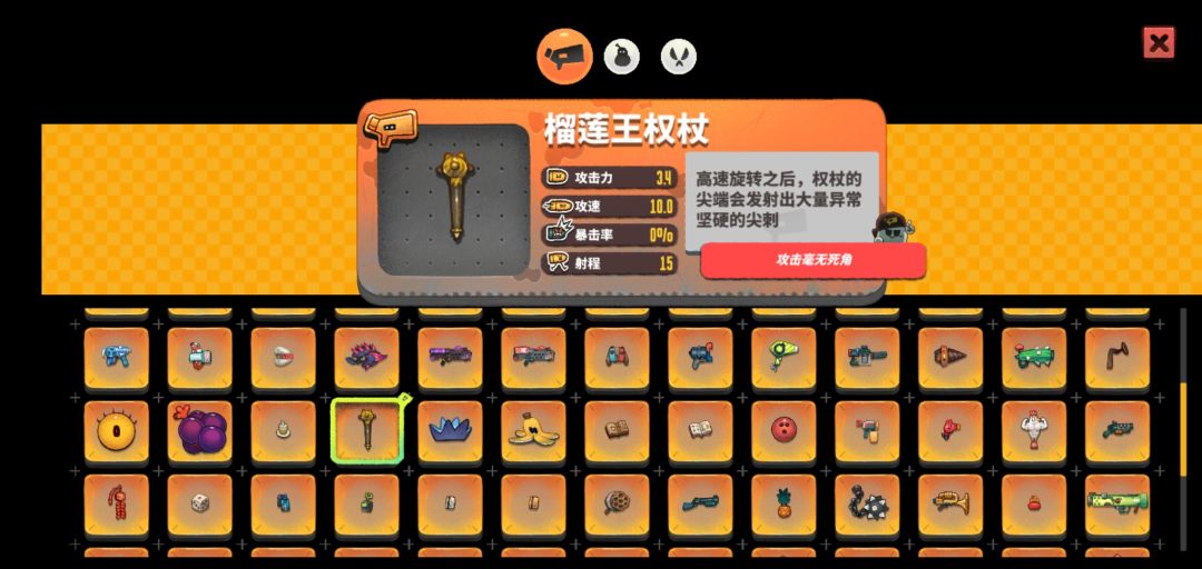 第五名:榴莲王权杖(连射远程类,解锁后打第三关榴莲有几率掉落)