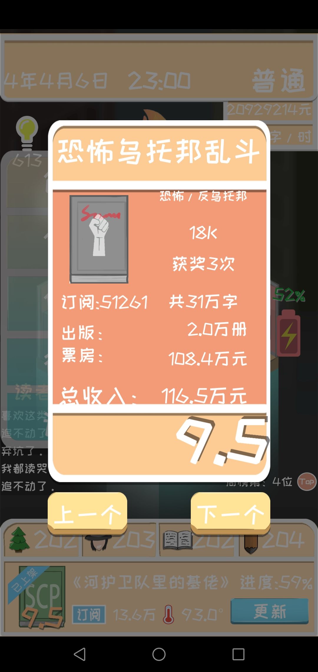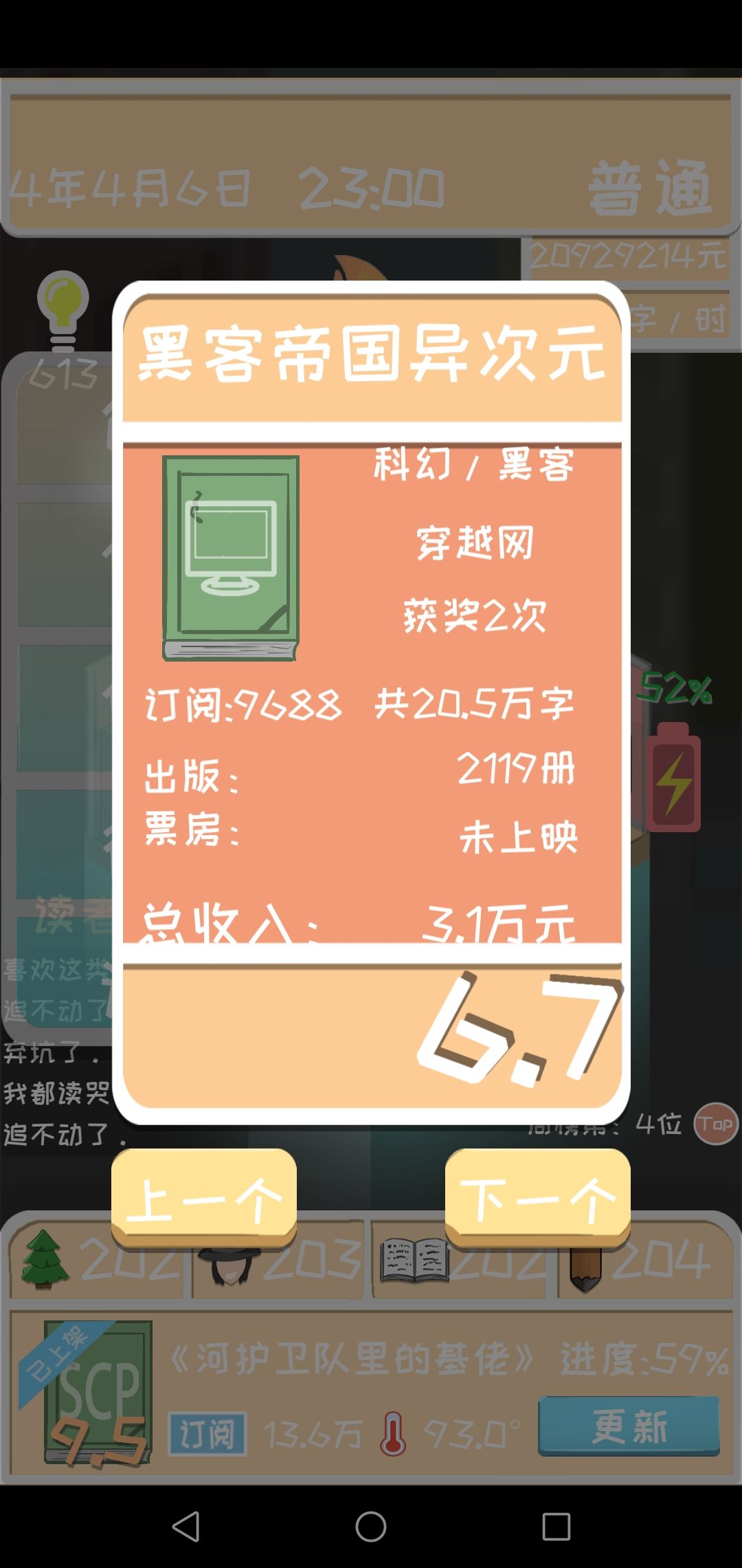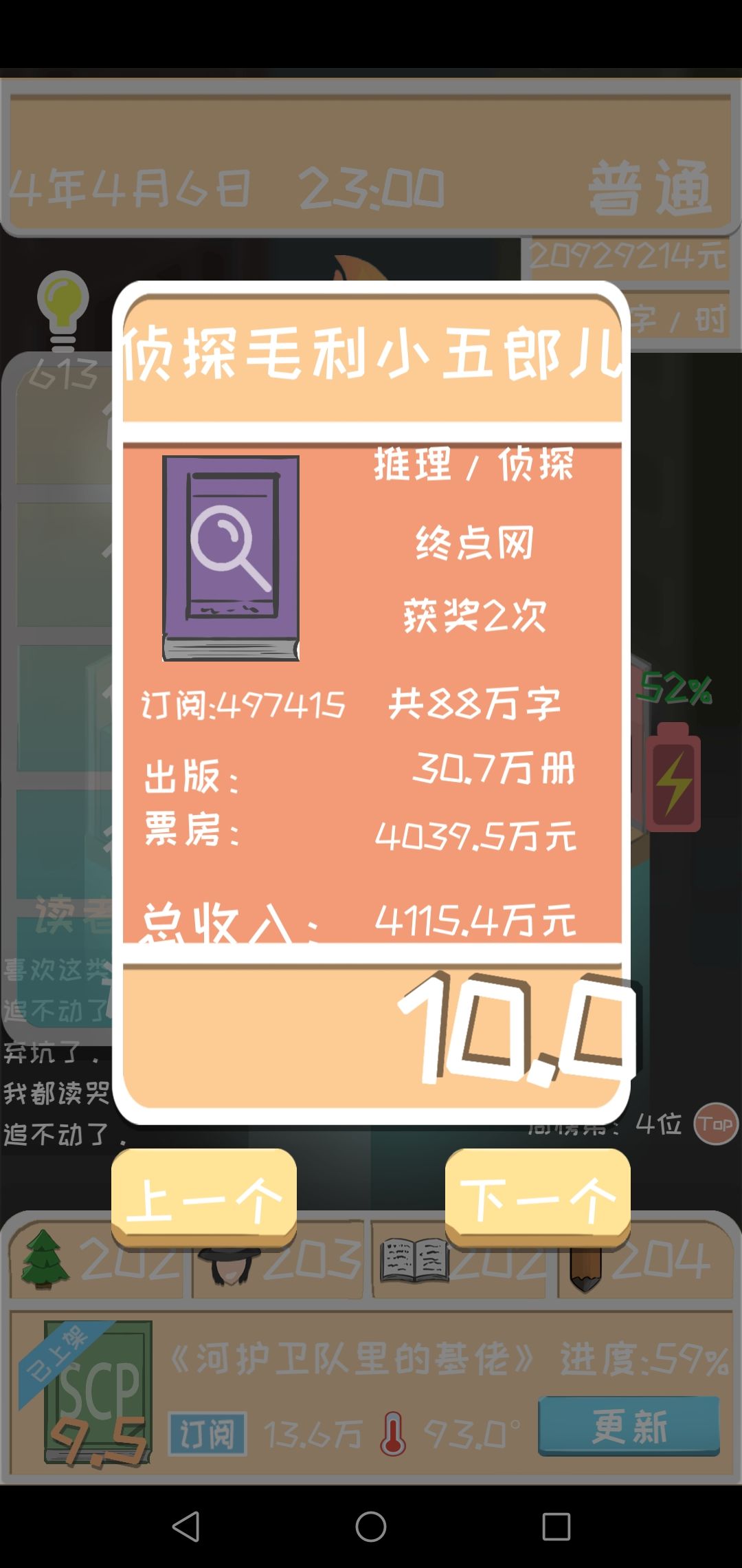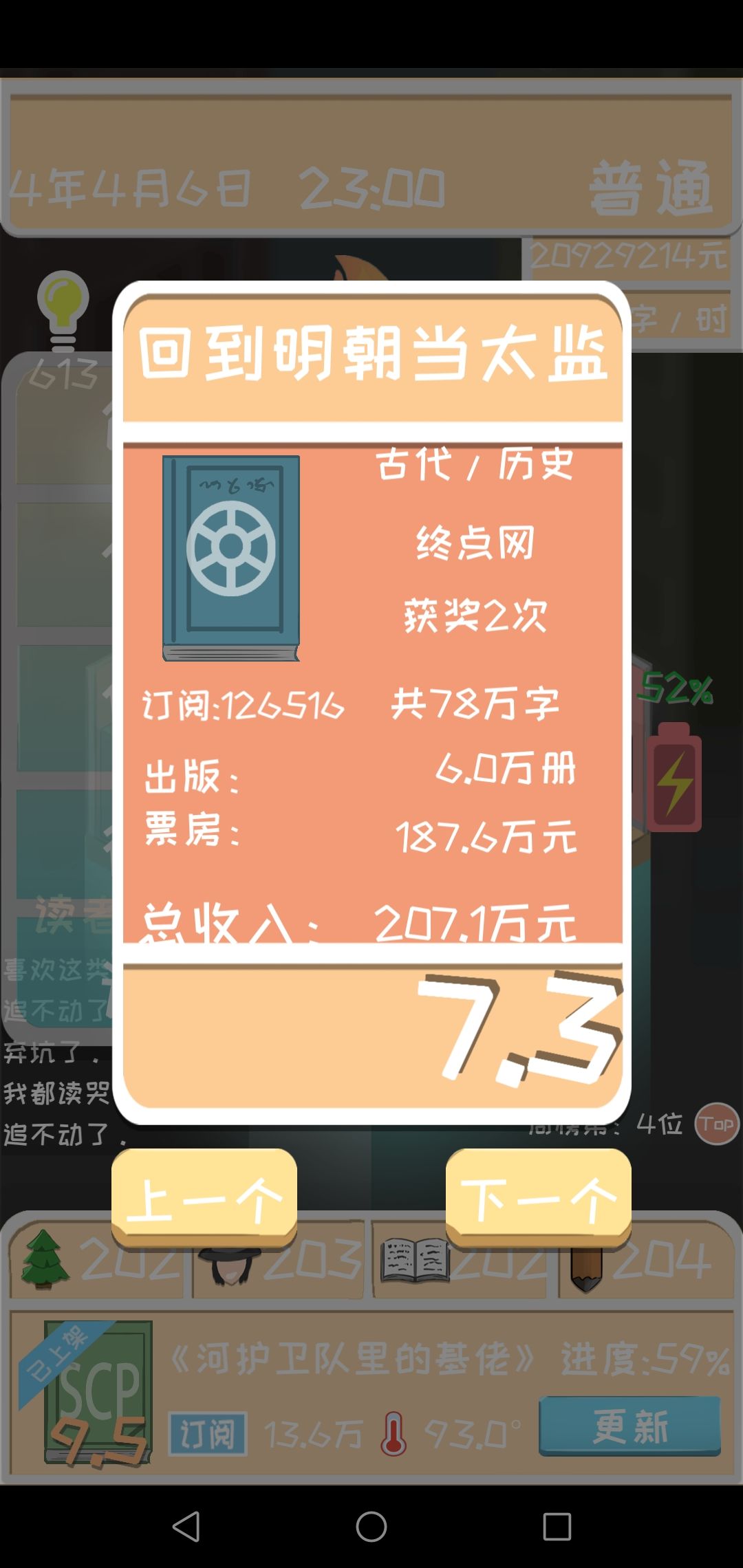 这本书的钱属性到100多以上 ,积蓄灵感,开书 直接最后网站上传 。其他同上,满属性后就是升级写作速度,和保证灵感供应了。