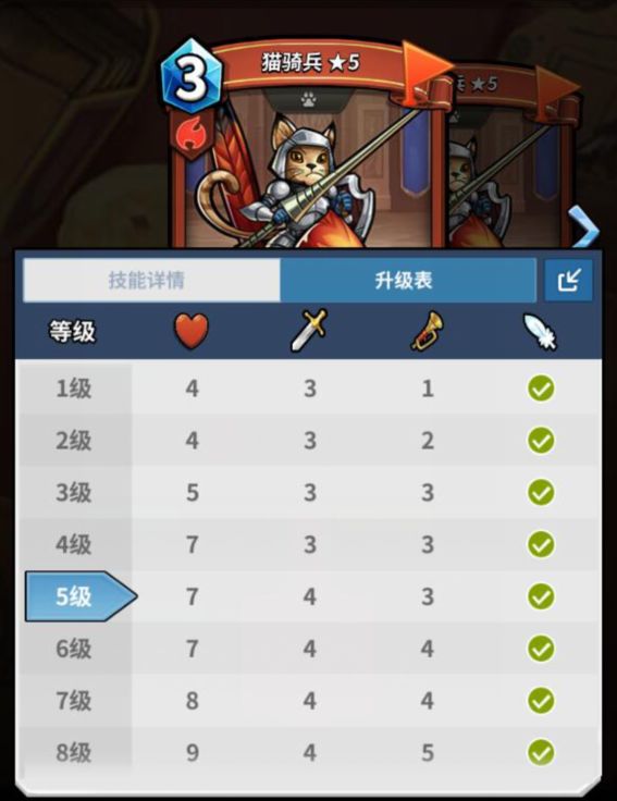猫骑兵各等级的血量、攻击、冲锋数值变动
