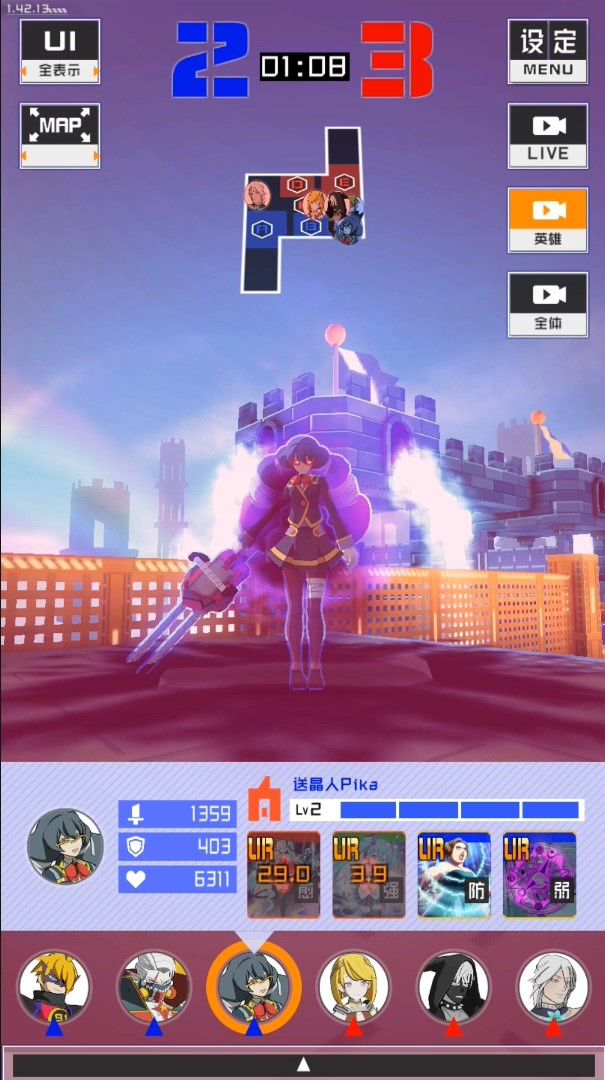 开局蓝队分析局势发现需要足够的伤害才能打下据点,直接开始积攒必杀。并开启必杀进攻据点,但红队的防守也非常优秀,第一次进攻波罗罗乔断下十文字防强,第二次进攻使用必杀拖延十文字和乃保的攻势。13也多次将蓝队击下高台,分散了火力,并及时使用必杀无敌防守。没有给蓝队任何机会。