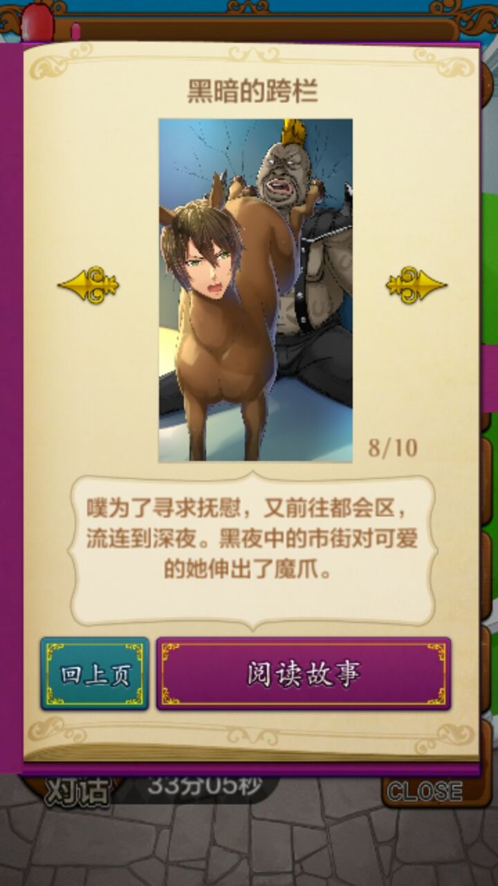 前十章打的时候还是挺有耐心的,虽说bgm很烂,npc大叔画的太偷懒,游戏bug(例如本来满对话是3个但是会出现只能恢复2个的情况),不能改设置,只能后台关闭,可能是翻译问题导致部分对话看不到完整的。但毕竟是个日式恶搞游戏,就是看游戏制作者的脑洞,对它就没那么高要求,还以为遇到凉马意味着会有人面马组织出现,然后这就是一场阴谋,基因改造什么的,好吧是我想太多,制作者估计就是想做个另类的养成游戏。