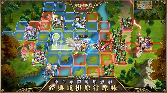 士兵、英雄汇集于战场棋盘,魔法与剑术交织,如同亲临指挥一场真正的战役,这正是《梦幻模拟战》系列大魄力战斗效果带来的核心战棋游戏体验!手游版将这一特点100%原汁原味还原。兵种间相互克制,合理选择出场人物与小兵,配合使用不同兵种,方能克敌制胜。地形要素影响战局,不同的地形上团队可发挥的实力也不尽相同,在平原上只能任人鱼肉的水兵,到了河流、海洋中则化为骁勇善战的精锐战士!在战斗过程中的攻防排布之间,充分展现华丽派战棋的王者风范。