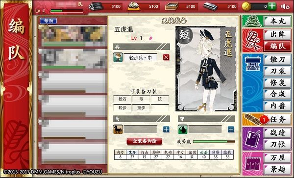 鉴于夜战地图的特殊性,短刀和胁差应是玩家队伍中的绝对主力。高等级的打刀也能发挥一定的作用。带和新选组相关的刀剑,将有可能触发【?三条大桥】的回想,不容错过。