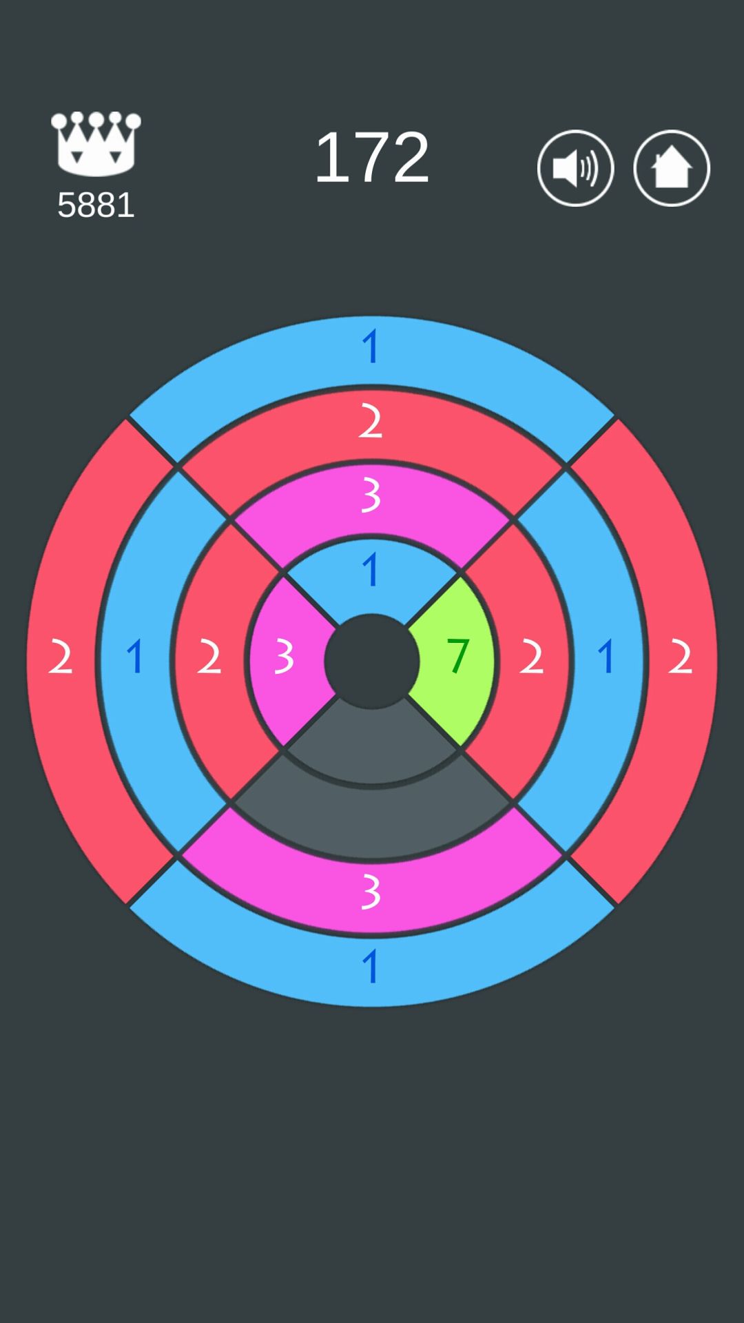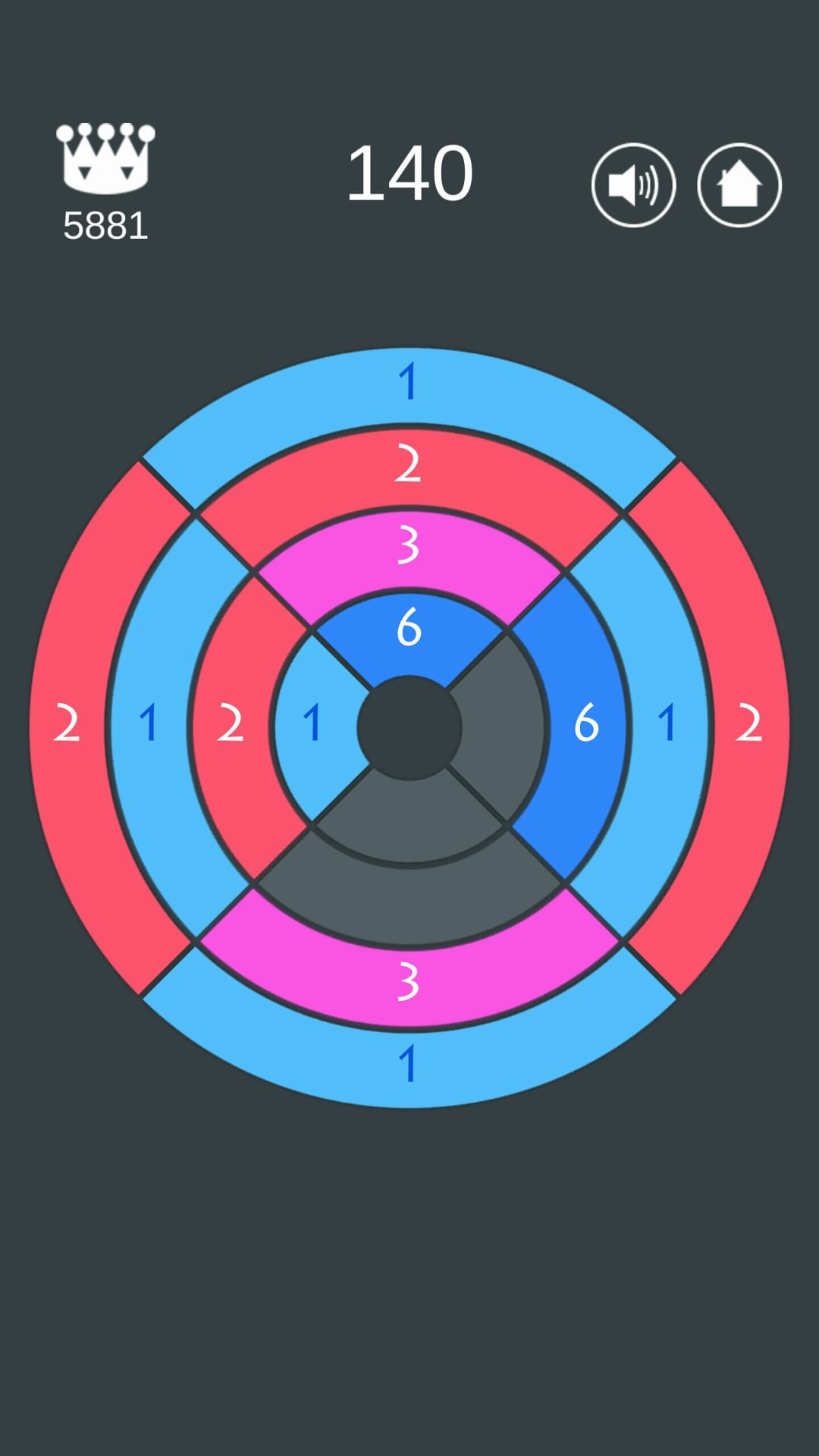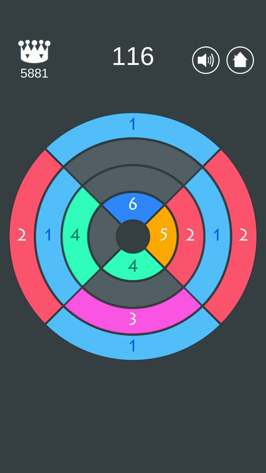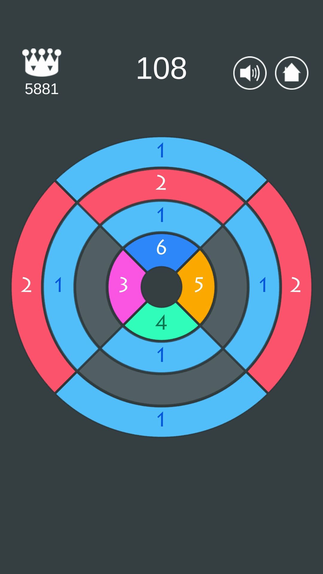 像下图,如果把第二圈的3转到右边,它变成4以后会继续和第三圈的4合成5。所以要注意预判