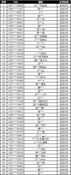在游戏客服平台收集整理玩家的举报,并通过游戏最新的安全机制进行了审查核实。我们发现部分御灵师通过非法游戏的行为破坏游戏环境,严重影响了大家的游戏体验。核实名单由游戏安全团队进行了封禁处罚,封号后将会强制撤出所有占领擂台的妖灵。为表明我们打击非法游戏行为的决心,特此将部分举报查实处罚名单进行公示。