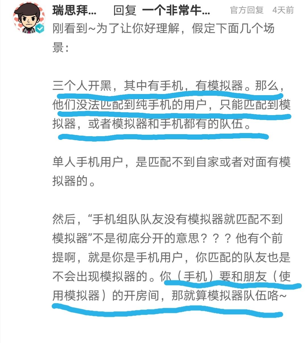 4.模拟器玩家遇到哪个对手都无所谓,遇到了手机还占了便宜。但是手机玩家世界频道组到模拟器,最后排位还遇到对手是仨模拟器的车队,这公平?世界频道喊话组队时组到的人是不是模拟器,谁能知道?