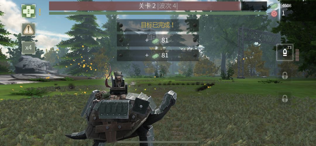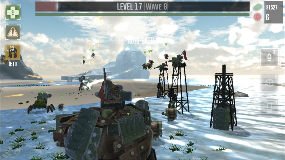 游戏的初始设定,类似抢滩登陆,我们需要手动瞄准击败不断侵袭的敌人,获得金钱来升级武器或者增加防守单位,闯到更高的关卡,有种射击和塔防混合的概念。