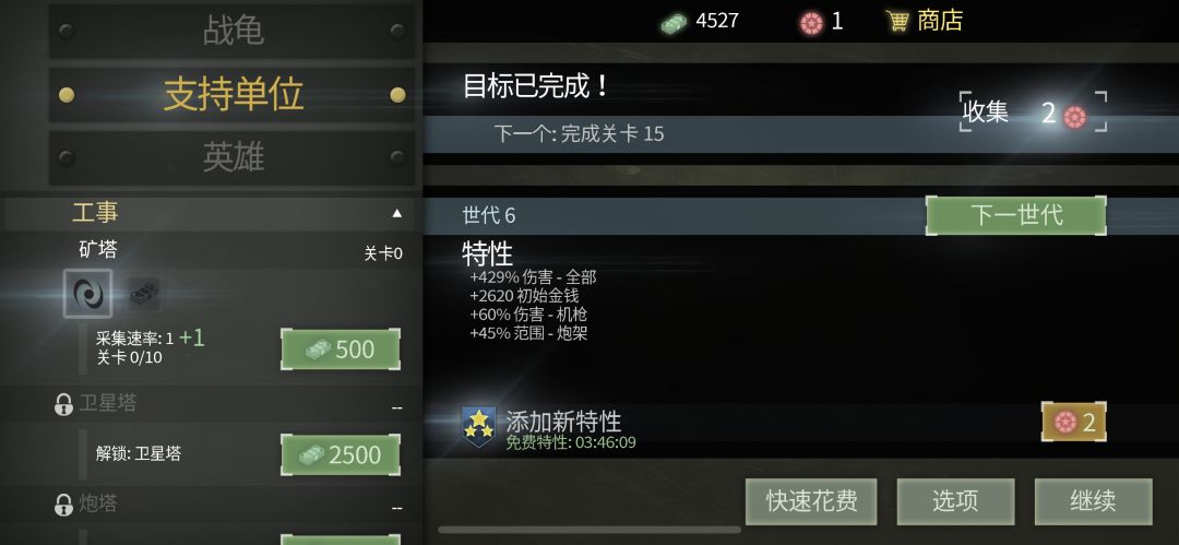 融合了射击、放置、塔防三种元素的战龟,都拥有相应系统的成长性,所以我们只要选择自己喜欢的游戏方式就好。例如:射击,你可以发展战龟的升级,主武器的多样攻击方式,是你提升的目标;而塔防就需要搭配经营了,你需要矿洞随时给你产出,让你快速积累经济,来生产其他攻击单位。