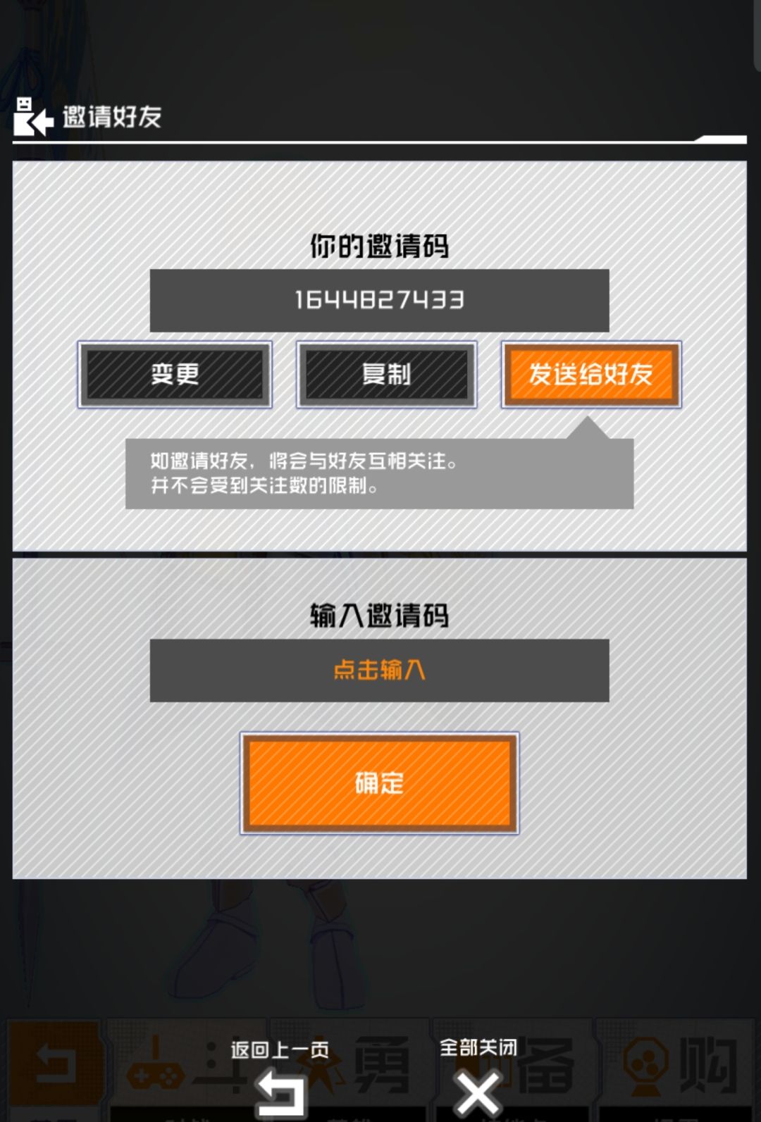 如果你没填过其他人,请留下你的邀请码,游戏内,首页-社群-邀请好友,可以看到,只有你没填过,填上我的,我才能领奖励,同样,我目前也没有填过,现在s1,你可以领2000金币。清楚明白了吗。后面的朋友只能加个好友了。