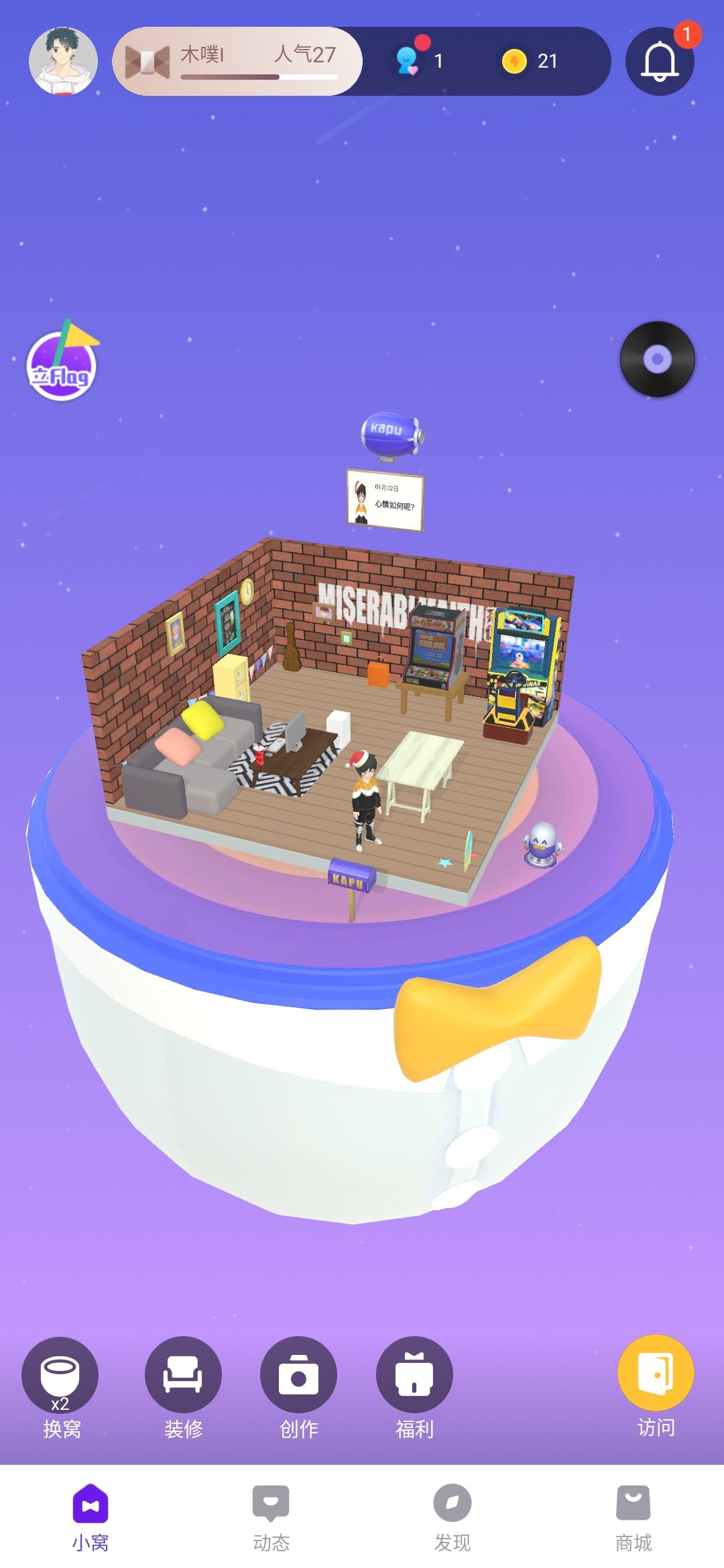 2:既然直播脱离主页面后,那就能填一些其他的东西进主页面了,比如一个房间系统,通过直播获取的金钱购买装饰,或者是充值购买的节日活动限定家具圣诞树、财神爷、对联什么的。花钱购买或签约都可以更换房屋,跃层公寓啦,复式小屋啦都可以嘛![[嗒啦啦2_优秀]](https://img.tapimg.com/market/images/bbb6da13ee1c31ee1405e261f12f366e.gif)