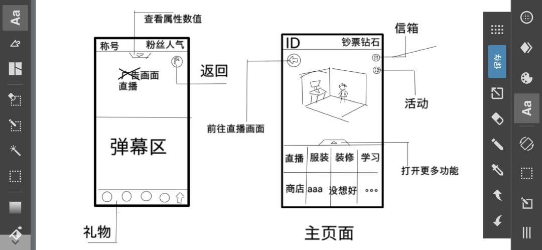 (手机上做的,有些简陋,放假回家后有时间用电脑搞一下)1:把直播模式改一下,让他脱离主页面,像打开王者荣耀,点击匹配才能开始对局一样,让直播功能独立出来,每次开直播都要设置直播时长、直播内容、直播风格等等,不同的搭配有不同的效果,会触发不同的随机事件,直播画面也会随着所选内容不同而变换,这样不仅可以让玩家有自由搭配探索的乐趣,而且限制了直播的收益,就能变相限制玩家的游戏货币的获取,不至于导致像现在这样动辄千万亿人民币,这是主播会有的收入?
