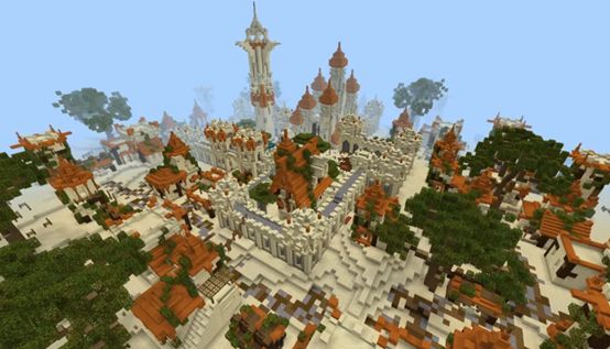 除此之外,作者还特别用心地设计了周边的地形,让它们的线条看起来更加真实和自然,大家可以单纯来观赏这里的建筑风情~也可以把它当作生存地图来游玩!快和史莱姆一起游玩这张地图吧~