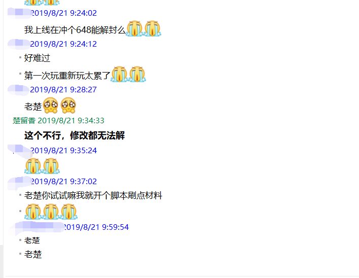 下图是被系统自动封号的玩家,想充钱解封,每天都有类似的找我们官方,但是一律都不解。