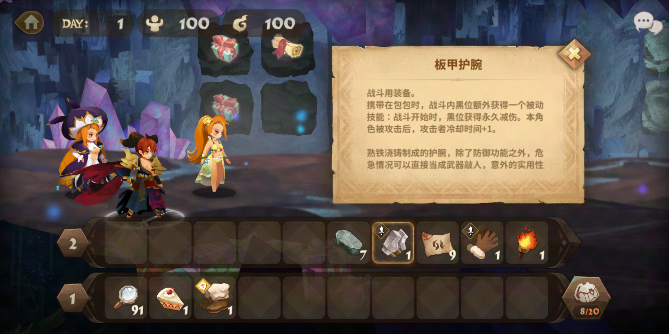 装备 上面一排是必带的(磨刀石 火把 医生凭证 绒毛手套 板甲护膝)
