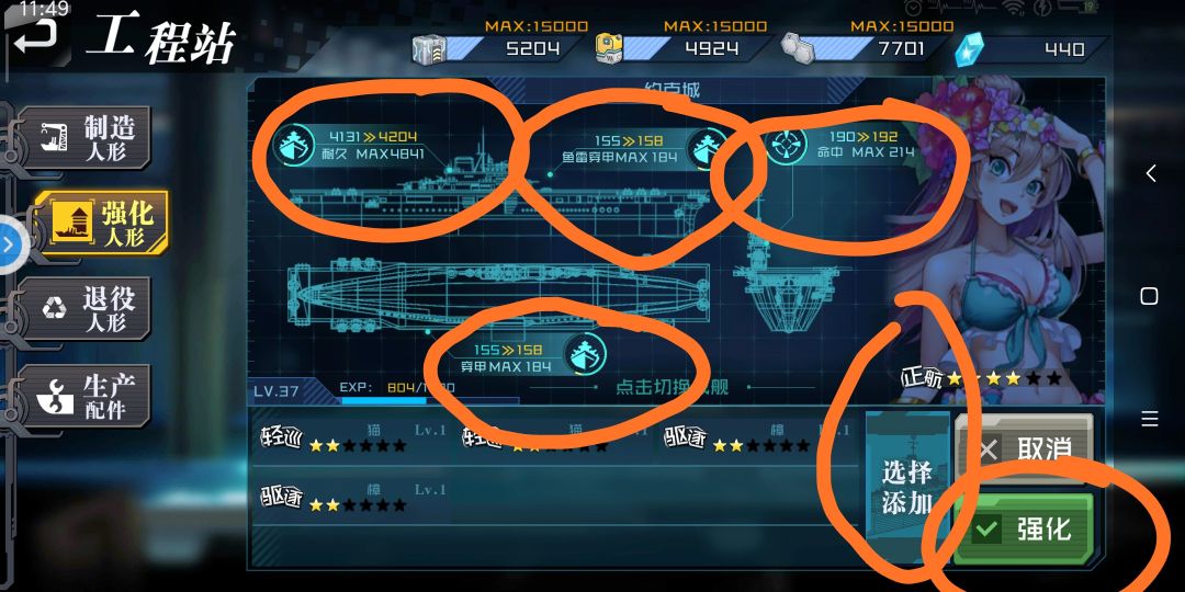 强化可以吞噬传承这类经验值用来升级,也可以吞噬其他的船来提升属性。(重点!)