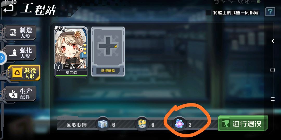 在工程站的人形退役里,3星以上的船可以换成碎片。