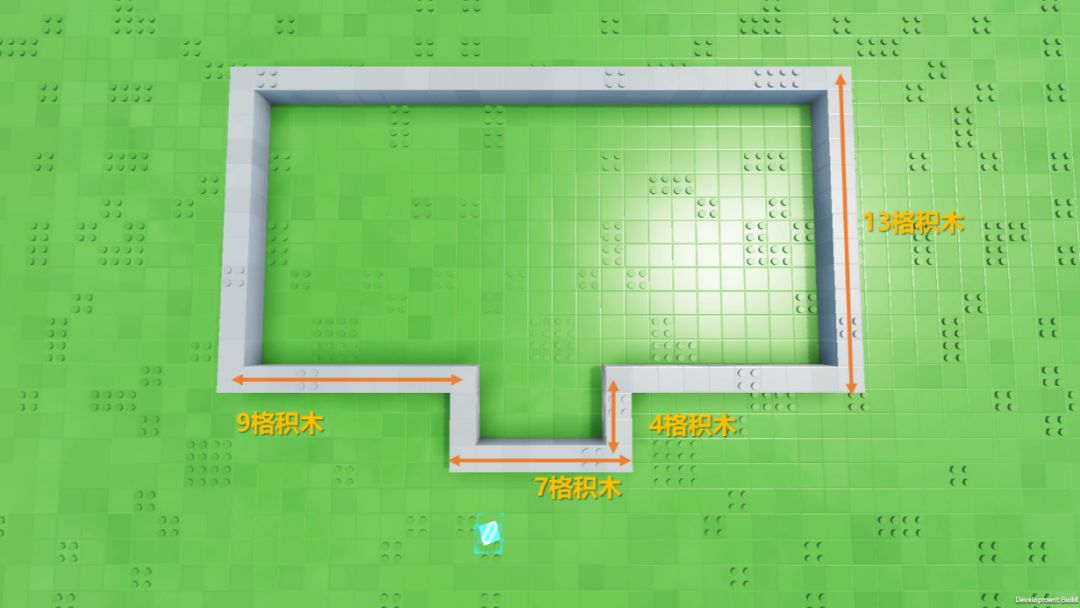 万丈高楼绝不会平地起,即使是一个小房子,我们也必须首先搭建好房屋地基和房屋的框架。首先,我们先将大概的房屋占地轮廓用【石块】勾勒出来,注意要房屋的每个边都要预设好长度,这决定着我们最终搭建房屋的面积大小。另外如果希望将屋顶搭建成为斜边,务必把该边的长度设定为奇数,以便于将斜边对齐。下面小编将把在此篇教学中,搭建房屋轮廓的长度和高度均标注出来,但小伙伴充分发挥自己的能动性,不必完全照着下面的来~