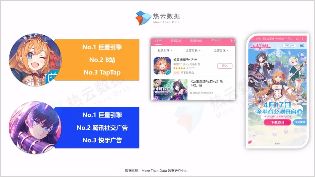进入4月以来,由B站独代的《公主连结!Re:Dive》(下称《公主连结》)和快手发行的首款重度游戏《命运神界:梦境链接》相继开启公测并迎来“爆服”。根据TapTap的二次元游戏热度排行榜,两款游戏分别排进前4,而在苹果App Store上两款游戏则分别成为该细分品类的No.1。