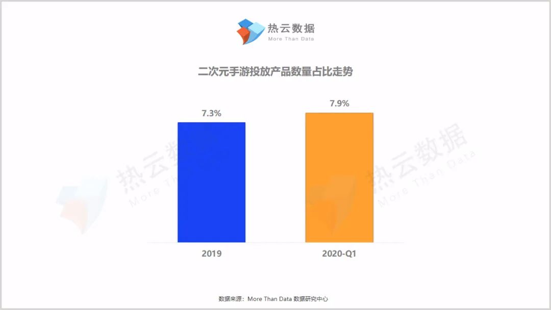 可见,国内二次元手游的竞争正逐渐向长尾化转变。另一方面,鉴于国内版号的“高压线”,包括二次元在内的所有手游同样朝着“精品化”而产生积极的转变。根据热云数据监测,2020Q1动漫题材投放手游数量占比虽较去年有所增长,但增长幅度并不明显。因此基于当前的特殊时期,近期新增的二次元手游在投放与获客上有哪些新的特征?
