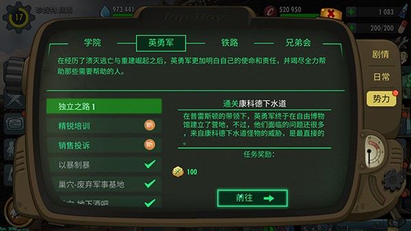 在《辐射:避难所Online》中,玩家能够光临英勇军的临时营地,协助普雷斯顿他们探索废土世界。玩家完成不同的任务就能获得相应的势力点数,也可以通过完成英勇军的委托任务来获取。获得的英勇军势力点数能够用于招募更强力的伙伴,壮大自己的队伍。