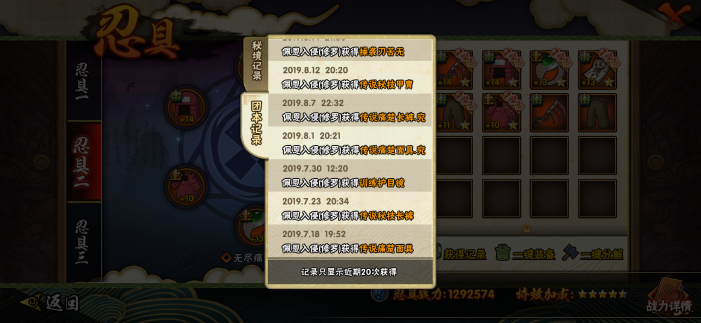 7月份120级,一次修罗都没错过,到现在为止,团本出了4个究,靠普通三大套合成了三次,一个戒指还有起爆符究,一次普通,今天晚上团本出了一个究裤子,