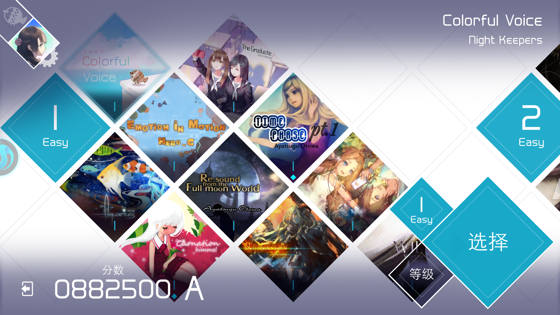 目前游戏共有155首歌曲,每首歌有简单,普通,困难三种难度,并配有总体的难度评