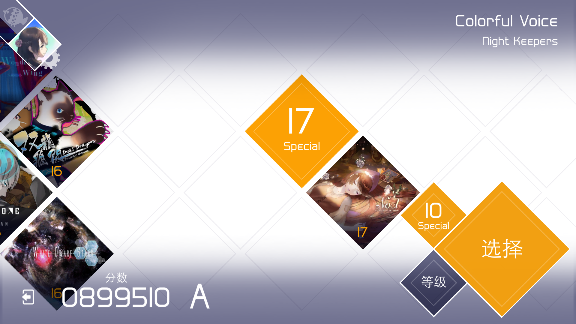 游戏内还有对速度的设定共十种速度,值得一提的是,无论是三种难度,还是不同的速度,都不会改变游戏歌曲本身的播放速度,这一点可以看出制作者真的是下了苦心啊