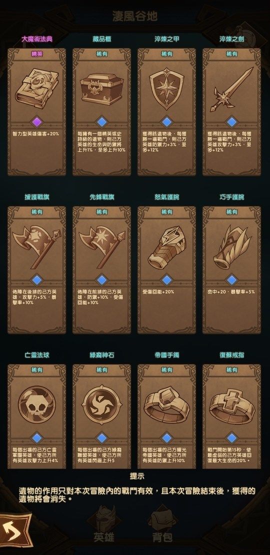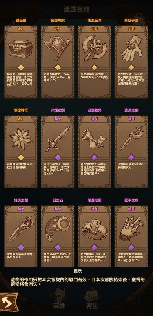 第二种就是输出型,例如全部有选到增加攻击力的遗物,尤其是淬鍊之剑*2把以及援护战旗*2再搭配冰火剑。