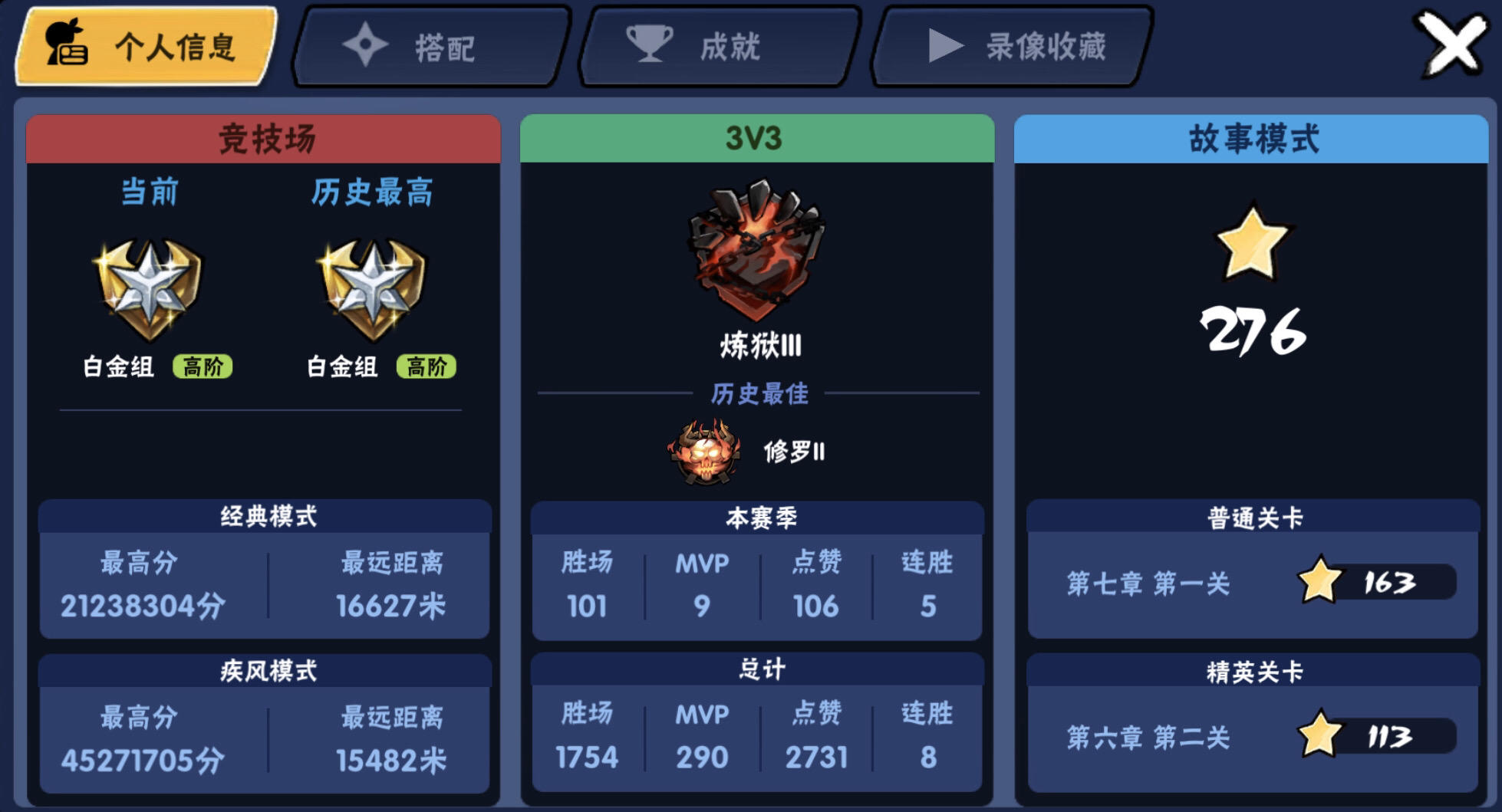 玩了快一年了,去年四月入的坑,中间断过2个月,运气较好抽到了祝融,目前3级,同时还有2勾刀鞘和1勾笼手,这些都是对战力提升极大的,基本都是靠运气抽到的,氪金不超过200吧,都是当时冲动买的,现在都佛了,只有休闲的时候打打3v3,因此一直渴望拿到牌仙称号,今天终于满足了