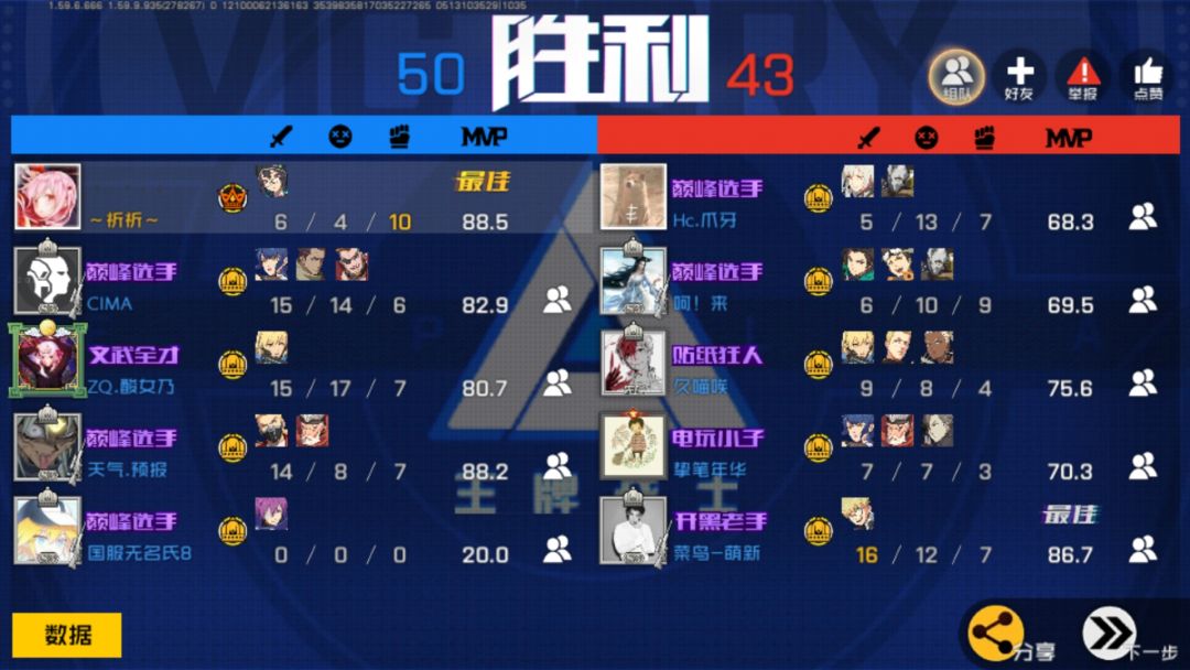 第一次拿叶羽是全场最佳,还收到了三个队友的三个赞,开心ヽ(○^㉨^)ノ♪(贴一下这局的数据,话说虽然没打多少伤害,但是疯狂奶人,极限救人小能手