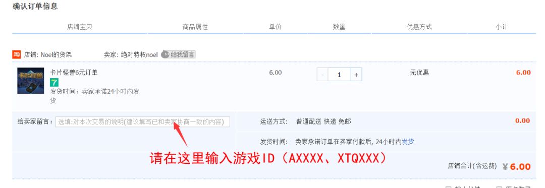 3.请注意一定要在备注栏输入你的游戏ID,否则钻石无法到账。 输入ID后付款并完成购买,等待客服人员处理。