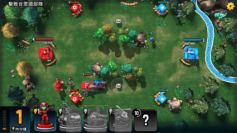 开局6点能量,机枪卡车加上两士兵先去占边路箱子+收人头,无论火箭筒还是机枪手都顶不住机枪卡车的伤害。两个空投轻松拿下后,机甲士兵也跟上我们先头部队的步伐了: