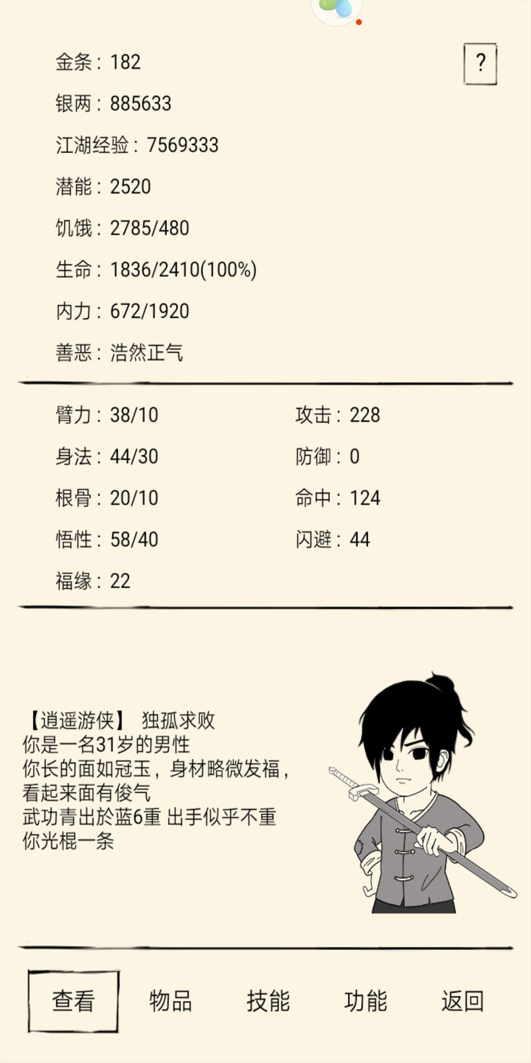 最近收了IOS紫龙的号,出师血刀后就没事做了,独孤败天的号继续钓鱼中,闲来无事,测试出了伤害和防御的计算公式,直入主题,测试方法.:因为基础拳法,刀法剑法等只有一个招式,且加成比例都是1,所以伤害是固定的,所以我们勾选其中一项,带上相应武器(拳法可以不戴武器)。打李白(李白的防御是18,内力是2190.其实大家也可以通过我后面的公式反推出任何NPC的防御)。测试过程过于繁琐,就不列举了,直接给大家关心的测试结果:最终伤害=(武功等级*面板攻击力/100+面板攻击-NPC内力/10)*(1-NPC防御/100).附:带破防武器的直接用NPC防御减就行了。
