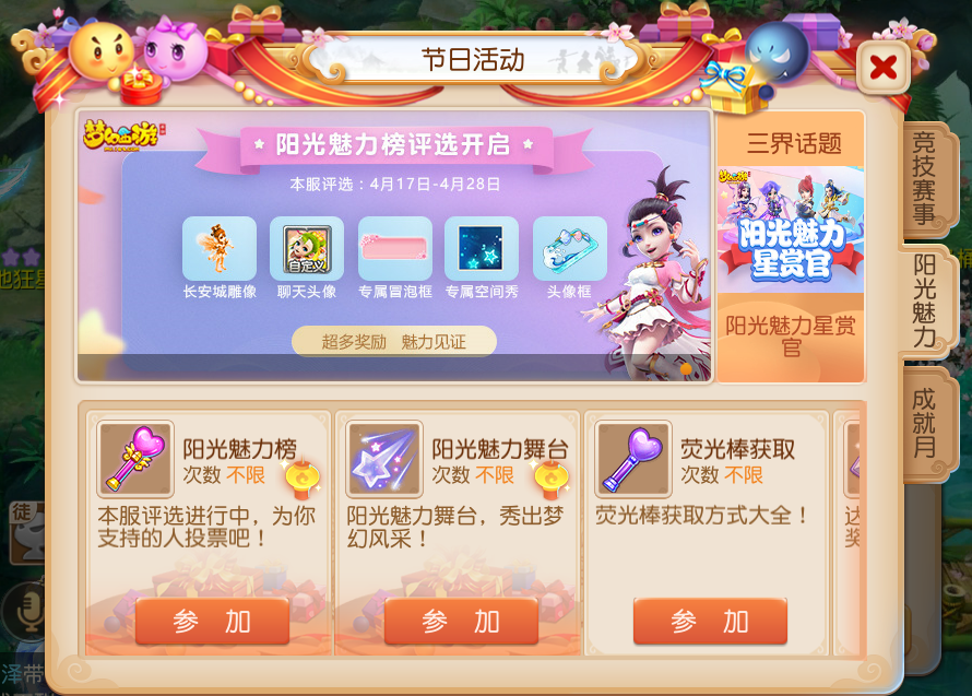 等你来应援!《梦幻西游》手游阳光魅力榜评选开始