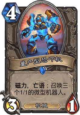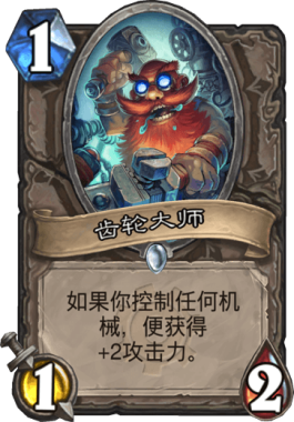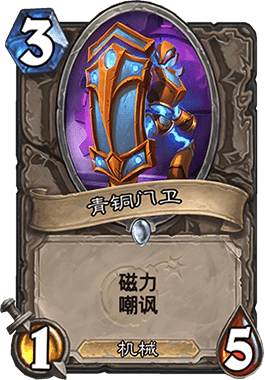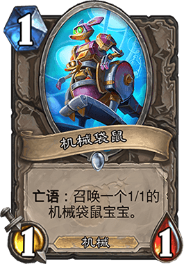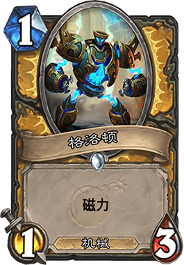裸下小赚,作为磁力组件更多时候用于随从交换,一费加三生命值真的是一个再好不过的随从交换buff,这个一攻还能锦上添花。没有这张牌的同学请不要用113鼹鼠代替,这套牌卡位很紧张,并且不是那么缺低费高生存的随从。