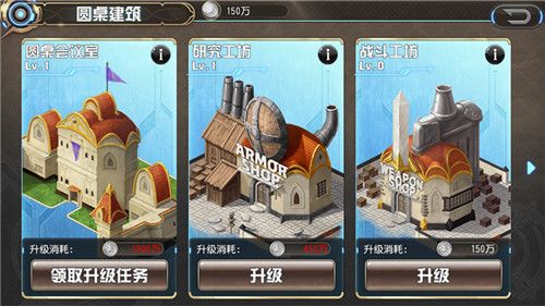 作为亚瑟们日常活动的重要据点,升级打造圆桌建筑也至关重要。会议室、研究工坊、战斗工坊、补给屋、拍卖屋……圆桌的科技、战斗能力与这些支持机构的实力息息相关,升级建筑能提升圆桌成员数量上限、圆桌基金上限,还能带来圆桌战力、成员生产行为收益等方面的提升。