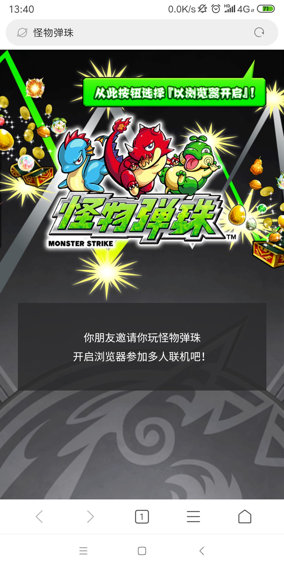 我这游戏成单机了,进了别人的组队群,点开链接用浏览器打开,但是不跳转到怪物弹珠是什么个情况,我才多半是废了😵😵