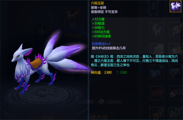 此外在本次的月光宝盒更新中,新增了暗金坐骑—九尾狐仙,金色坐骑—六尾玉面,淬神系列武器重新回归金色宝箱(第五期)。