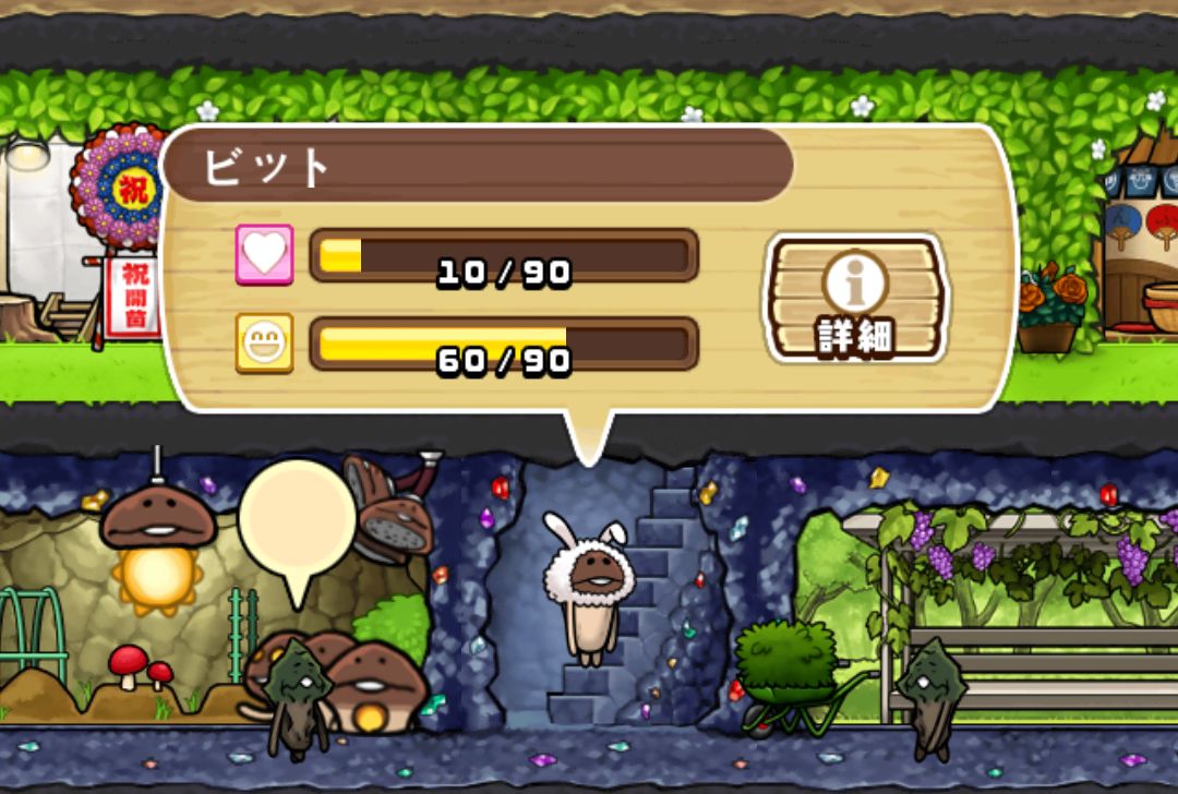 3. 菇菇在劳作后血量和心情都会下降