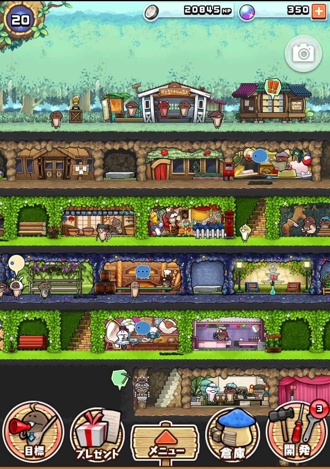 2. 装备屋出产的装备加成以及buff加成是作用于那个种类的所有菇菇,并且不论穿不穿上那个装备,数值和buff都会出现。所以装备屋能算是升级场所[・_・?]