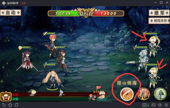 这个需要技巧,首先咱说一下对面的配置,前排三个盾牌兵优先攻击前排中路并且攻击只有40,即打你前排中路只掉一滴血。后排弓箭优先攻击后排中路,伤害在1000~1400之间,非常恐怖,并且杀死战姬时,所在的那一排战姬全部死亡。