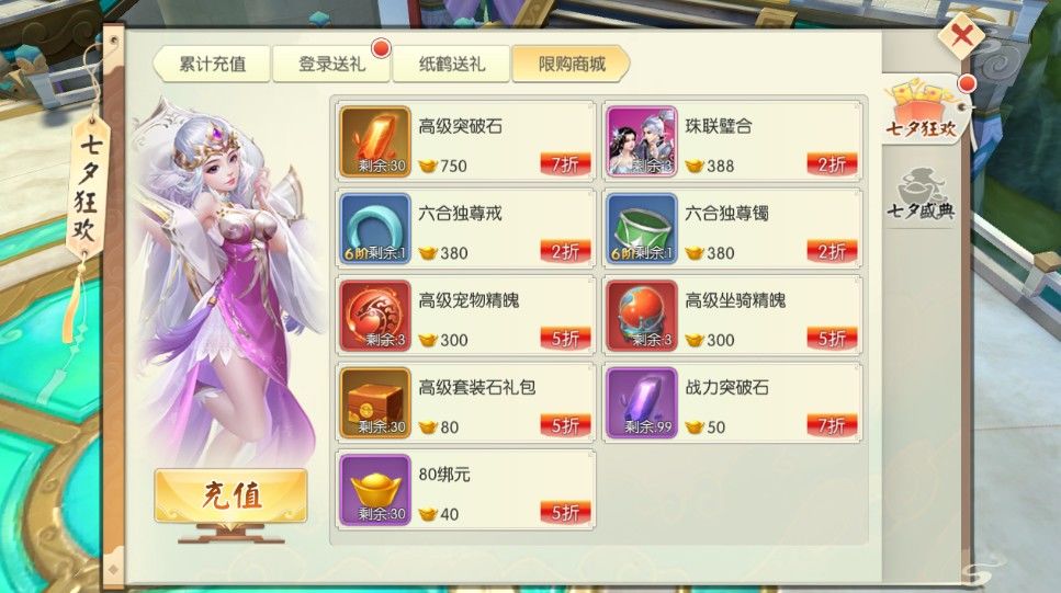 第一档:疲劳药水 纸鹤5个 高级宠物丹 高级坐骑丹