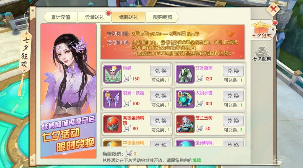 (通过击杀BOSS和离线打坐获得的纸鹤有上限)